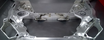 The mounting points needed to be relocated, fabricated and look as OEM as possible. As the Subframe is aluminium the mounting points were fabricated from aluminium and then fully TIG welded into there new position. The front Cross bar also needed notching for clearance of the sump and a infill welding in place.